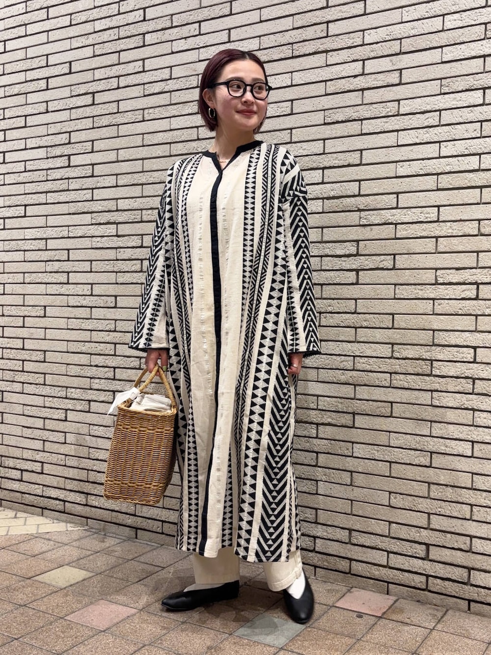 ジャガード柄のワンピースは、 ふわっとしたシルエットで、夏まで着ていただけます!!! 前ボタンなので全部開けて、羽織としても使えますよ!