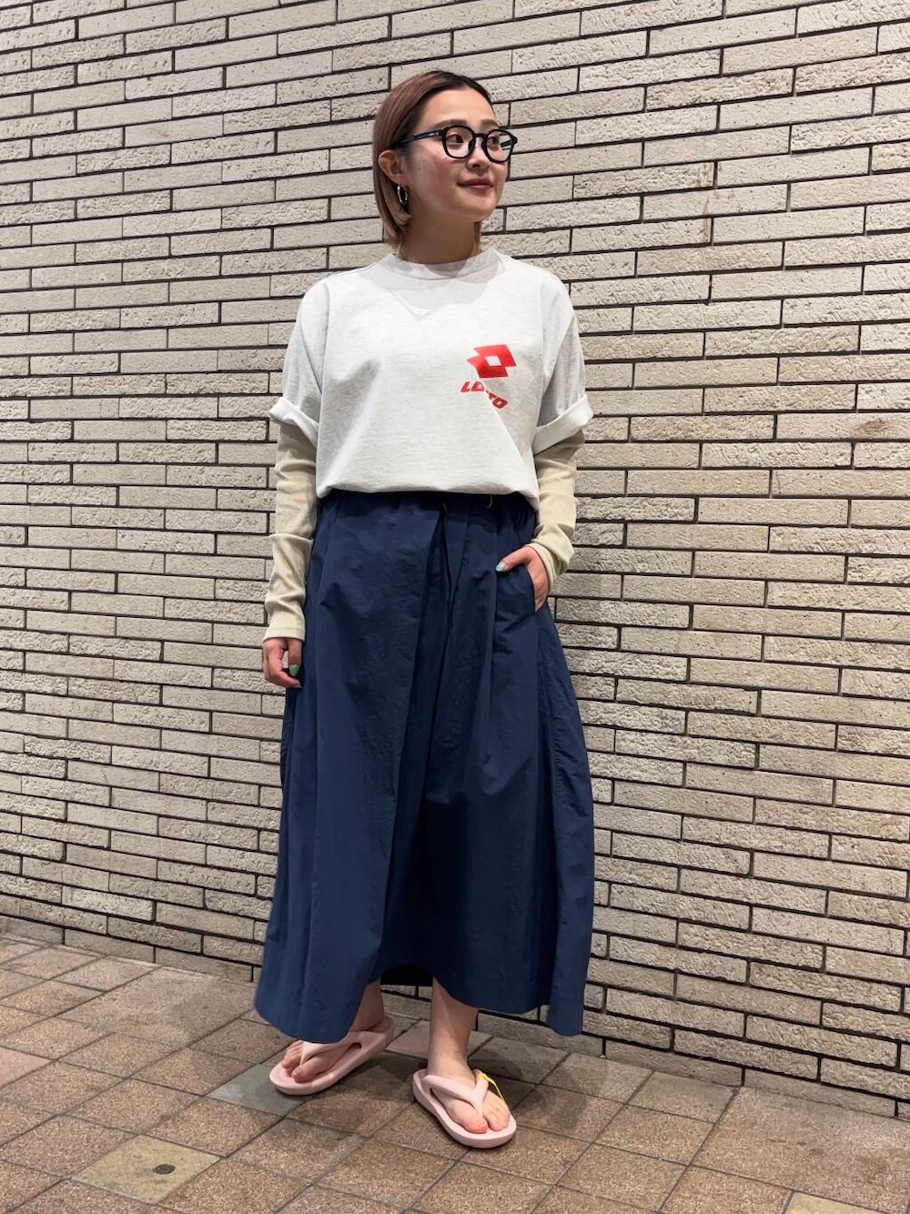 フェスにぴったりなコーデ✨ 半袖の下に風通しの良いシャリ感のある長袖を合わせることで日焼け対策に! メンズライクなコーデですが、スカートやシアー感のあるアイテムを合わせて女性らしさを出しました✨