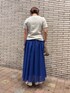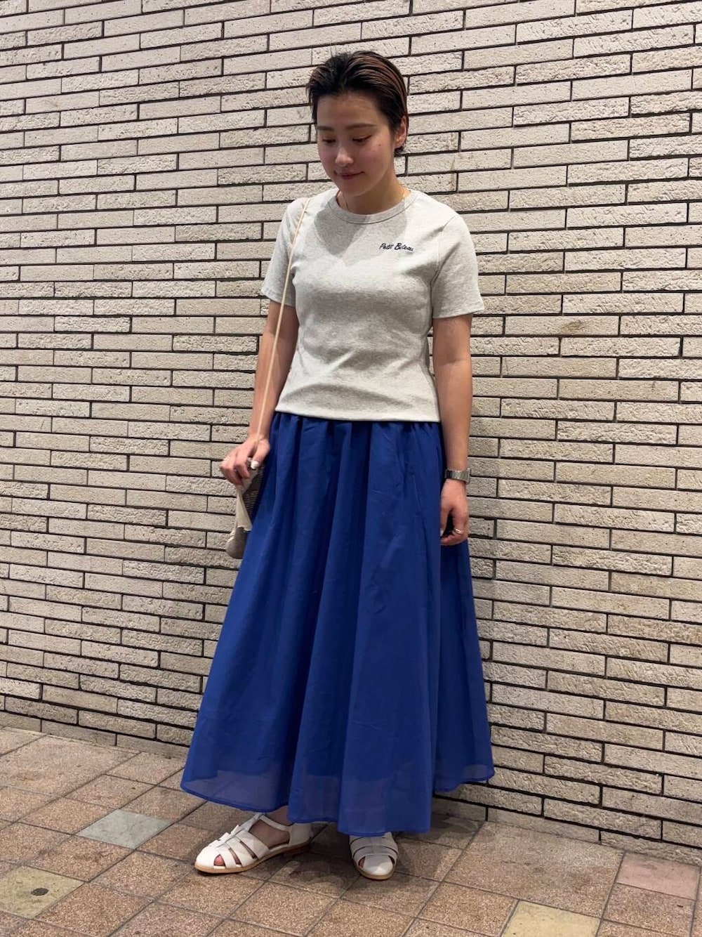 ふわっとコットンボイルのスカート✨ 嫌な広がり方はせず、ふわっとしているので、トップスは、ピタッとしたアイテムやゆったりブラウス、シャツやカーディガンを羽織っても素敵に着用していただけます! 今回は、別注のtシャツと合わせて大人カジュアルなコーデにまとめました!