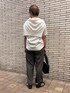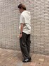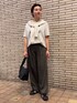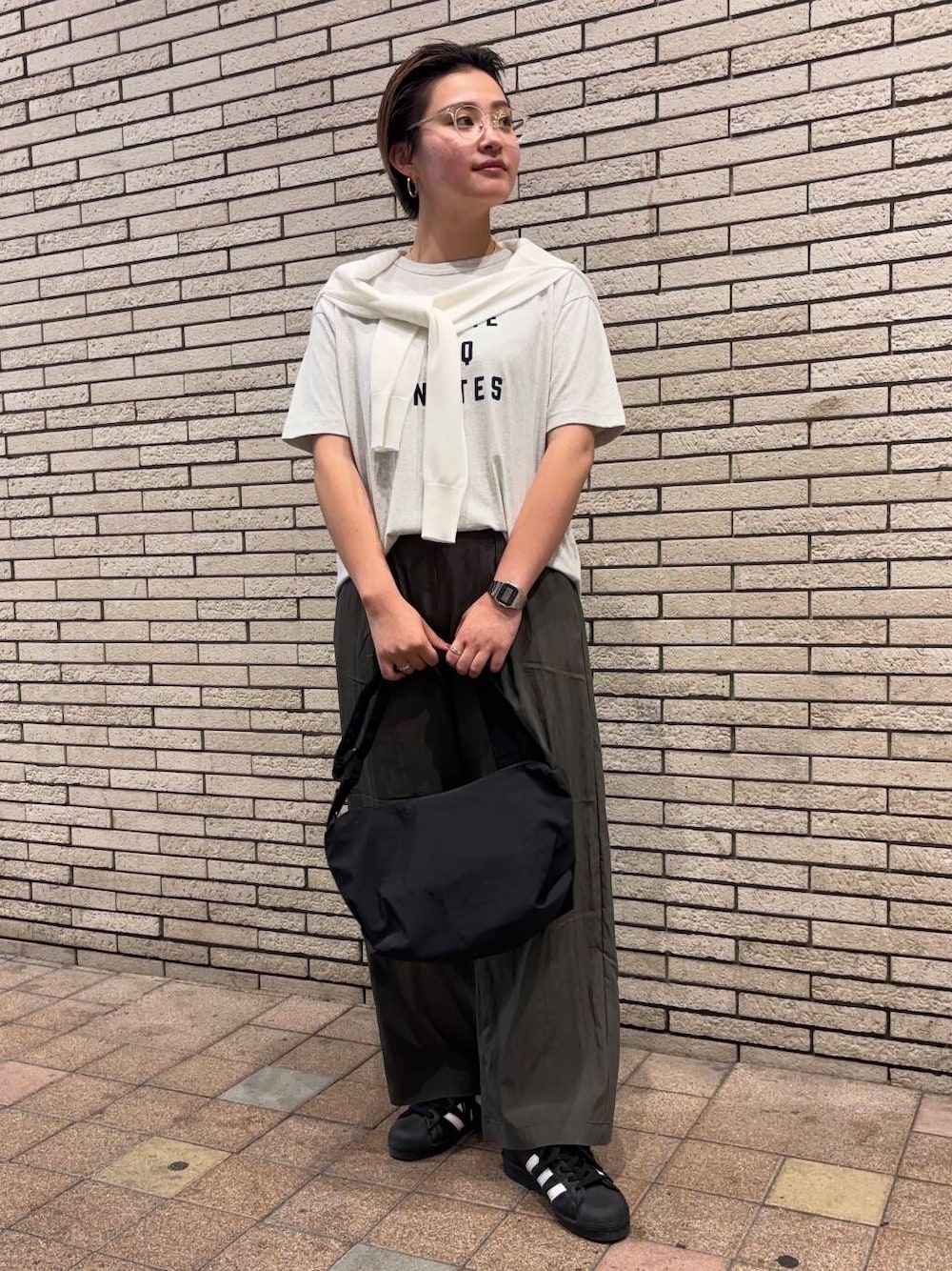 一つ一つのアイテムはシンプルですが、合わせ方次第でアレンジが効きますよ! 寒暖差対策アイテムとして、シャリっとした生地感のカーディガンを肩に羽織りました! パンツもサラサラでとっても楽ちんです!