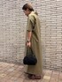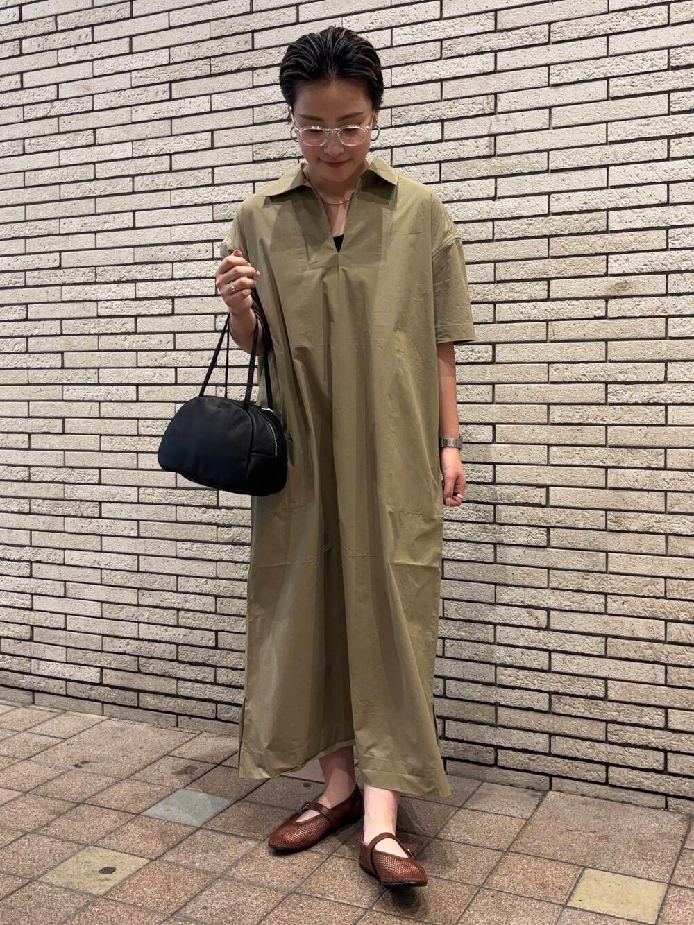 新作のワンピースは首元がVになっているのでお顔周りがスッキリ見えやすいです☺️ 私の身長で1でちょうどかな、、? 長く着たい方は2でもありかなと言った印象です!ジャストサイズは1でした!