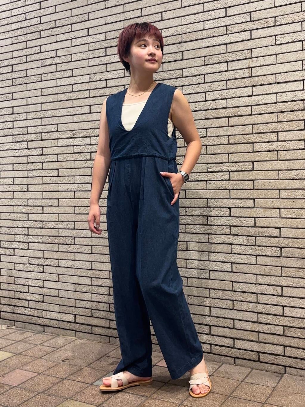 デニムのオールインワン! 今回、私はタンクトップと合わせました! Tシャツはもちろん、ロンTと合わせても着れるので春から秋まで長く着用いただけます!!! ポケットから何故か小指も出てしまっているのはご愛嬌、、、🤣