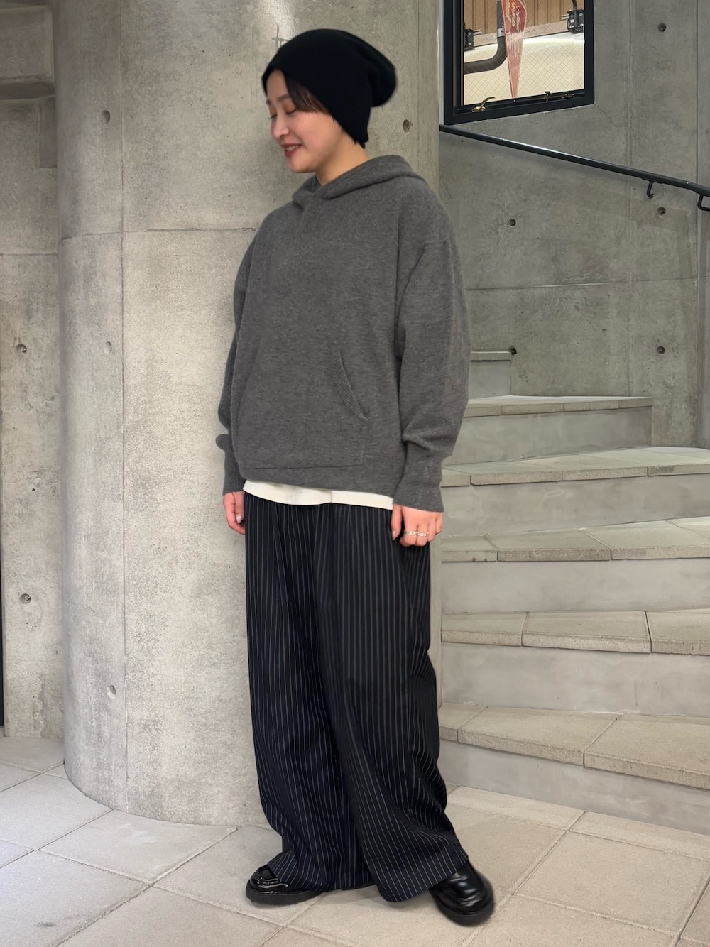 京都店のみお取り扱いのあるdDdDdDd。 私もお気に入りのカシミヤシリーズは、肌触りがよく嫌なチクチクは全くありません! 今回はシンプルにストライプのパンツと合わせて、大人なコーディネートにまとめました。