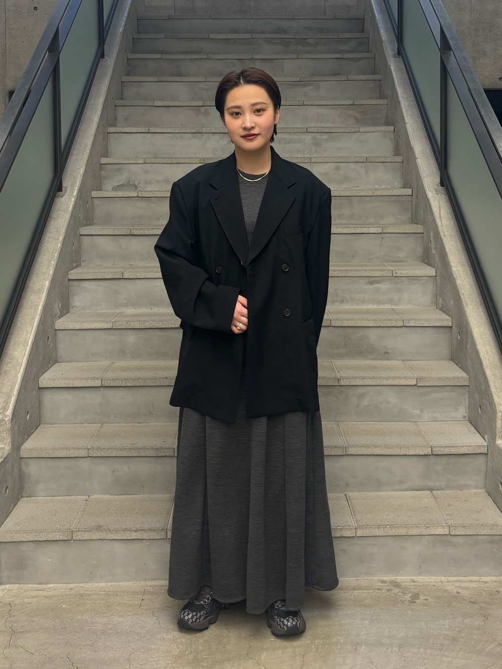 ラフなワンピースも、ジャケットを羽織って大人な印象に。