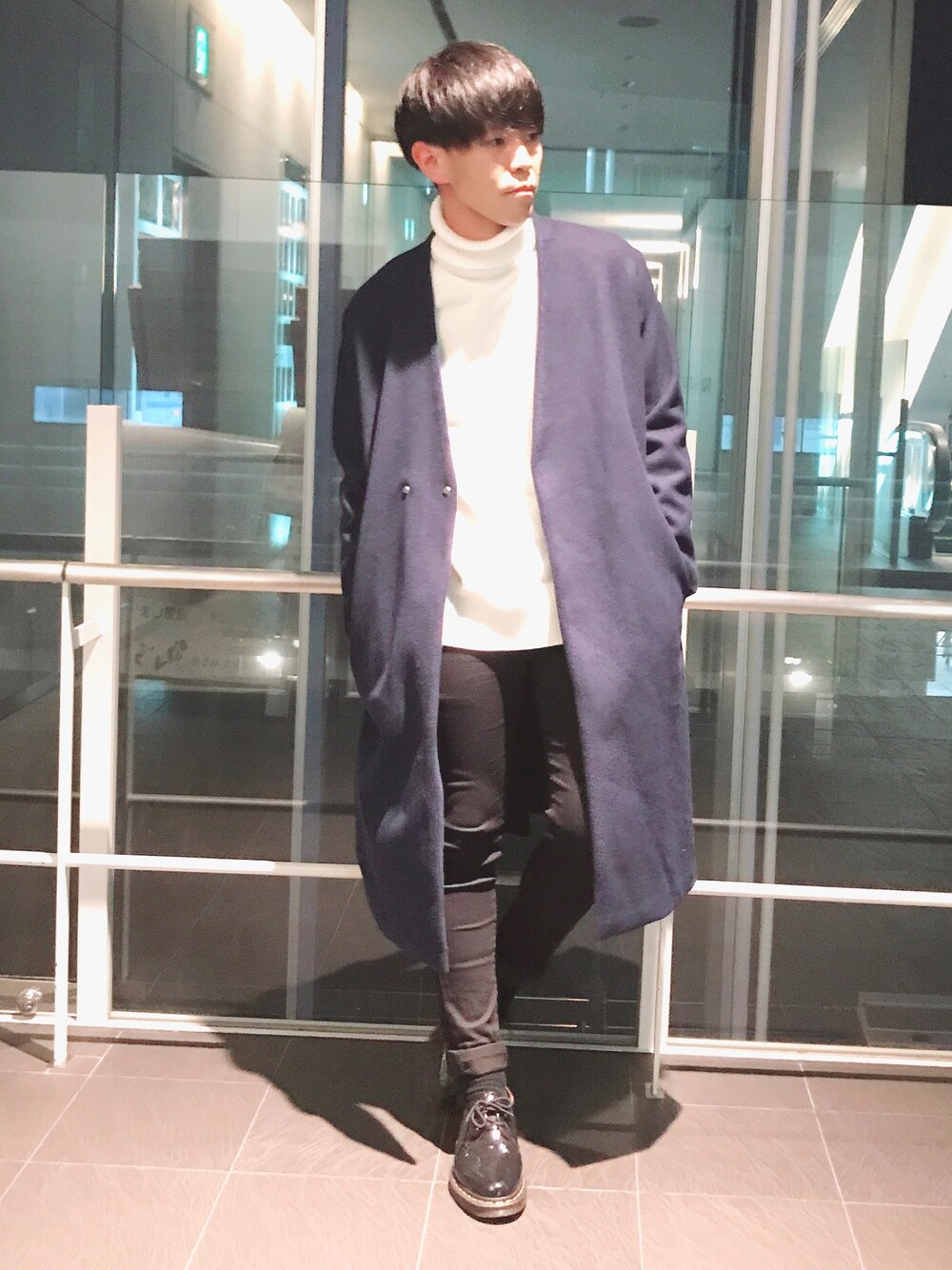 どうも、まきおっす‼︎ オーバーコートと白タートルニットは安定ですね。笑 よろしくおねがいしやーす‼︎