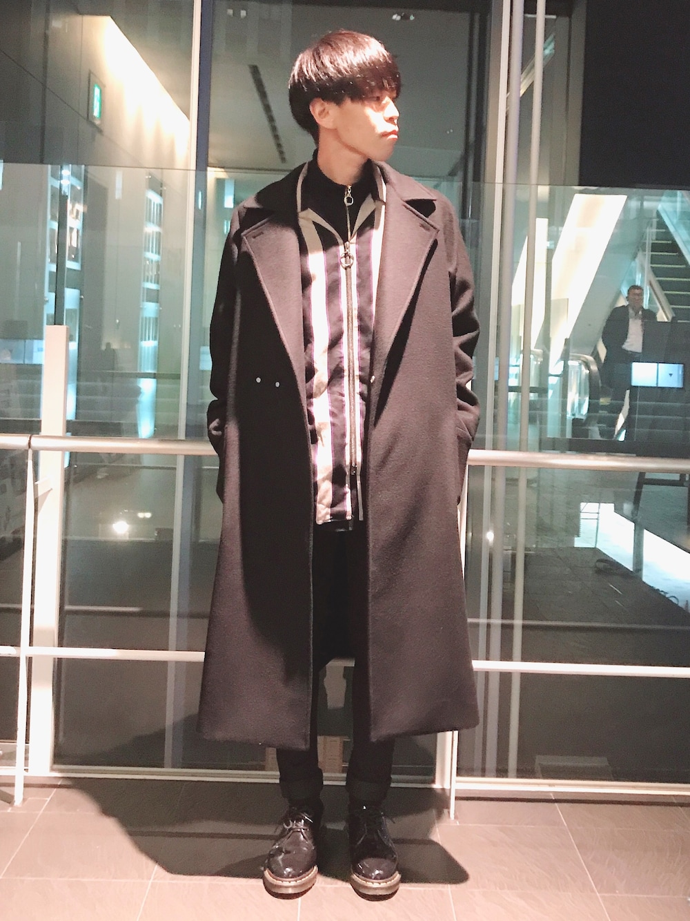 まきおのチェスターコート「NEW ビッグシルエット オーバーコート」を使ったコーディネート