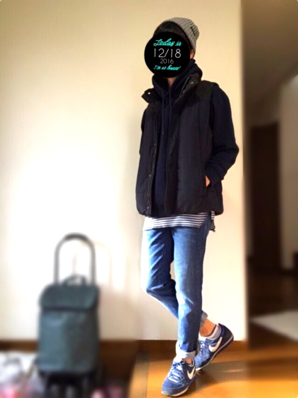 とにかくスキニーデニム← こんばんはです! 今日はダウンベストにスキニーデニムです! 以前アップしたダウンベストのコーデから スキニーが合うのではという アドバイスもいただき モノクロにネイビーで合わせました! 今日は気持ち暖かかったので ロールアップもしちゃいました(=´∀`) ちなみにこのデニム、最近 GUで購入したんですが、 まさかの990円ですよ?w 分かっていても驚きですねwww これから愛用して行きます♪(´ε` ) 明日からまた少し暖かいらしいですね! 冬は粉雪が降るくらいが 一番好きです← 👋👋👋👋👋