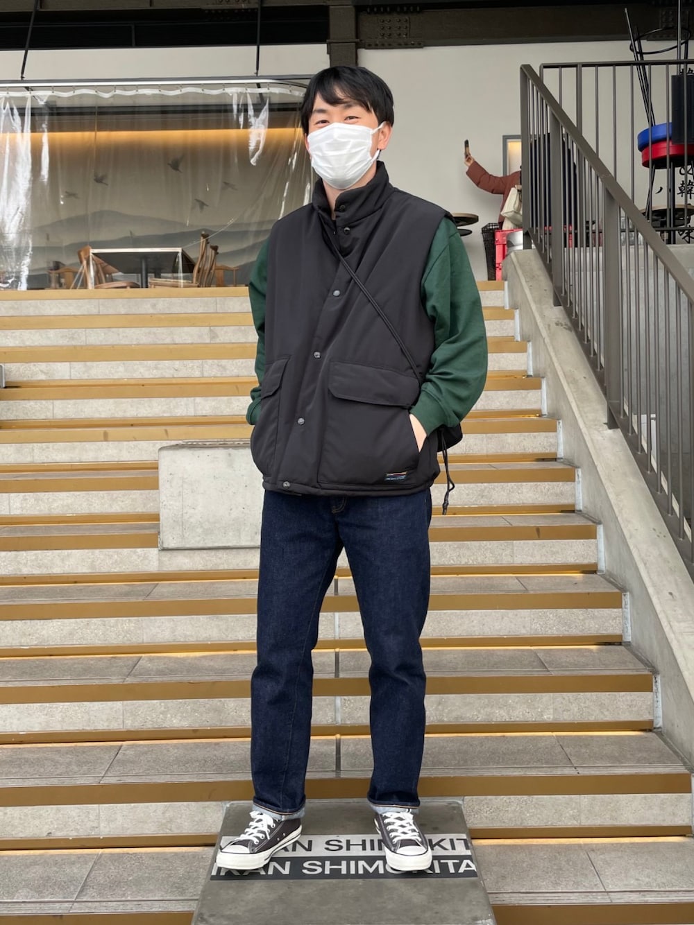 少しだけ暖かくなりギリギリダウンジャケットから脱却。 ダウンベストは使い勝手◎着心地◎ デニムはLevis501の1954のLVCです。