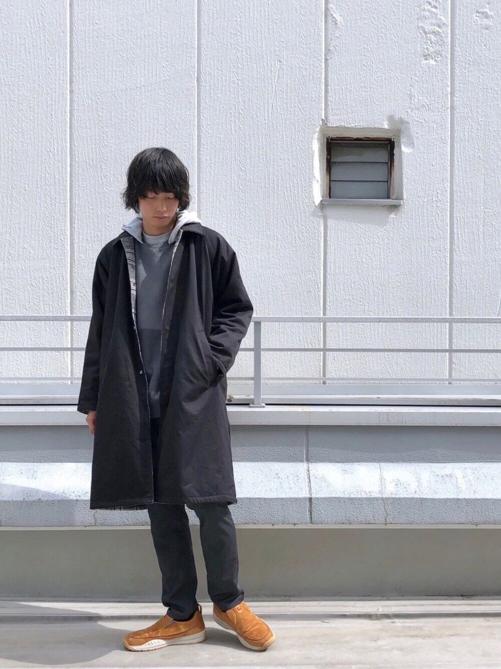 リバーシブルのコートです🧥 パーカーはusedライクなアイテムで、 トップスが割とボリュームあるので、 スッキリとしたシルエットで動きやすい グラミチを合わせました。 このコートめちゃめちゃ便利です😇 隣にチェックの方も載せておきます!