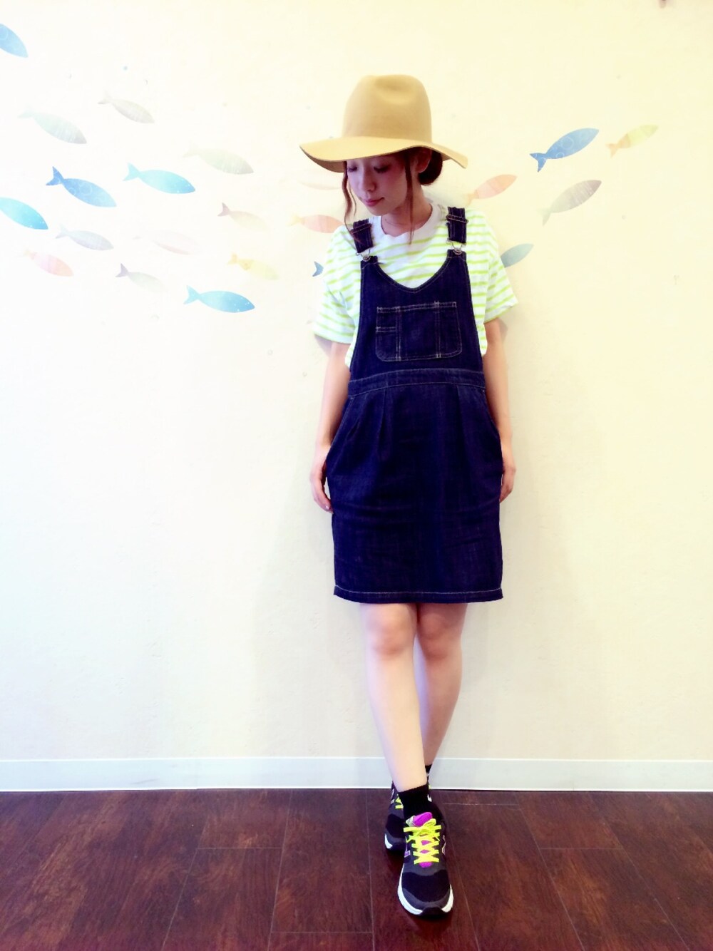 こんばんわ⭐️ 毎日暑くて暑くて テンション上がっちゃいますねー!! 夏だいすきー!!!!! お天気もいいから洗濯物もよく乾くし!! うち洗濯物は 自分の物は自分で洗うシステムなのです。 あれは母が更年期に突入した時だったかな〜 ある日、母が突然、 てめぇの物はてめぇで洗えや!! と言いはなったのです。 その言葉に誰一人逆らう者はなく はい!!そうします!! と即答! それから今に至ります。 今日は新しい柔軟剤ゲットしたので 洗濯するのが楽しみです♥︎♥︎♥︎♥︎ さて、コーデ。 ジャンパースカートとスニーカーで 子供っぽく若く見せつつ ハットで大人っぽさプラス的な感じ!! まさに今の私の年齢を表すかのようなコーデ! 大人っぽいコーデに憧れるんだけどなぁ。 なかなか大人っぽくならないのが悩み。 では、今日も1日お疲れさまでした♥︎