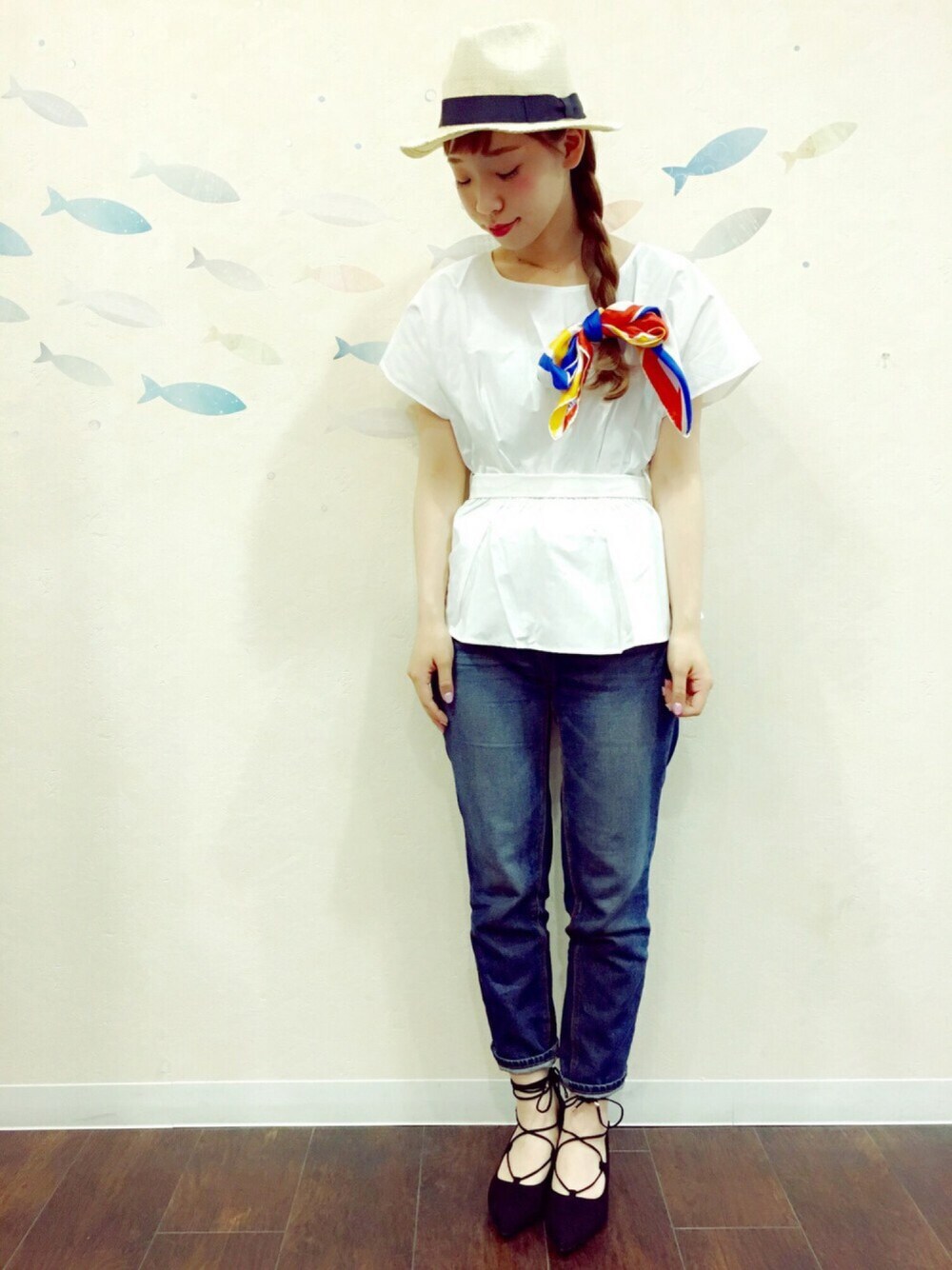 かRUのハットを使ったコーディネート
