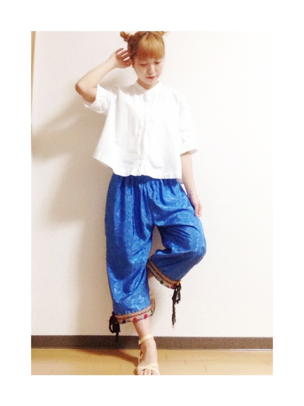 シャツ/ZARA パンツ/USED サンダル/JILSANDER アクセサリー/KBF /メリッサジョイマニング このパンツ今世紀最大級に可愛い。