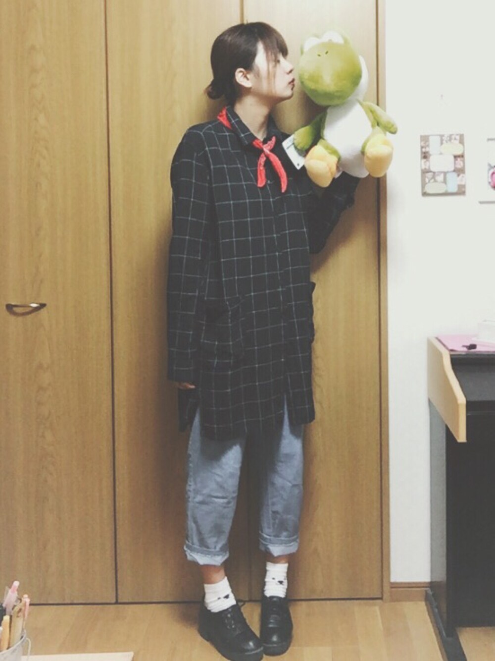 初ゲスト! いつも一緒に寝てるヨッシーです🐊❤︎ 今日の服は遊び心が満載です〜〜 着てて楽しい。 ピアスの穴開けました 違和感。、 見ていただいてありがとうございます☺️!
