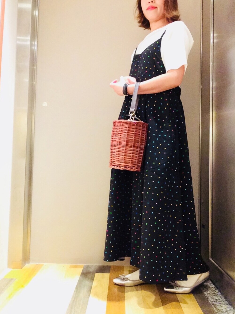 ご覧頂きありがとうございます☆ いいね!お気に入り!フォロー!嬉しいです♡ トップスにも、重ね着にも便利なワッフルTシャツにドットワンピース☺️ ワンピースはグリーンパークスのセレクトです✨