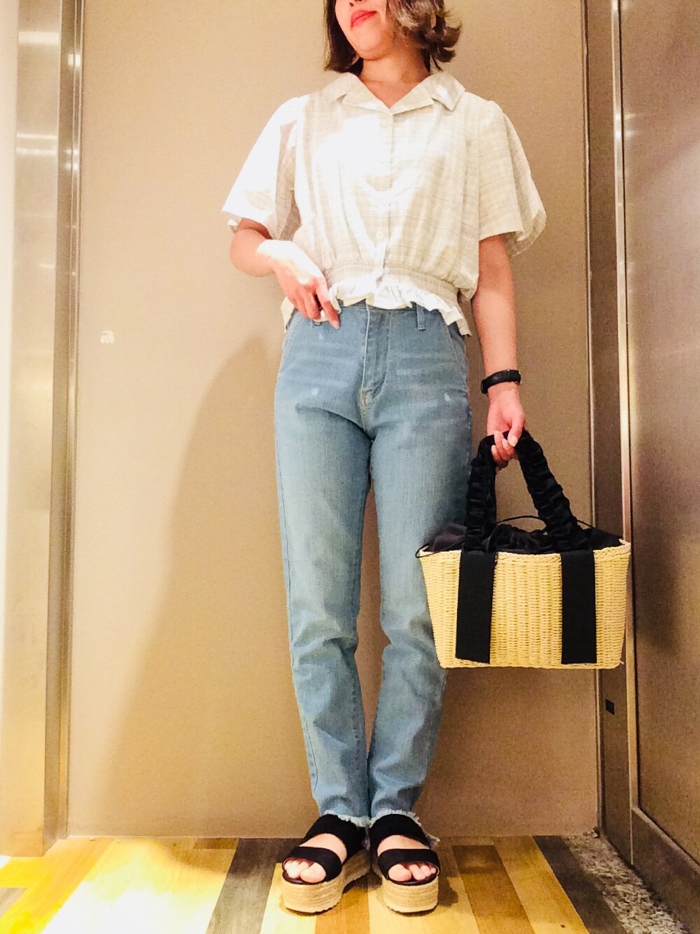 ご覧頂きありがとうございます☆ いいね!お気に入り!フォロー! 嬉しいです♡ カチッとした襟が可愛いアースの新作ブラウス💗 薄色デニムと合わせて夏らしく💯