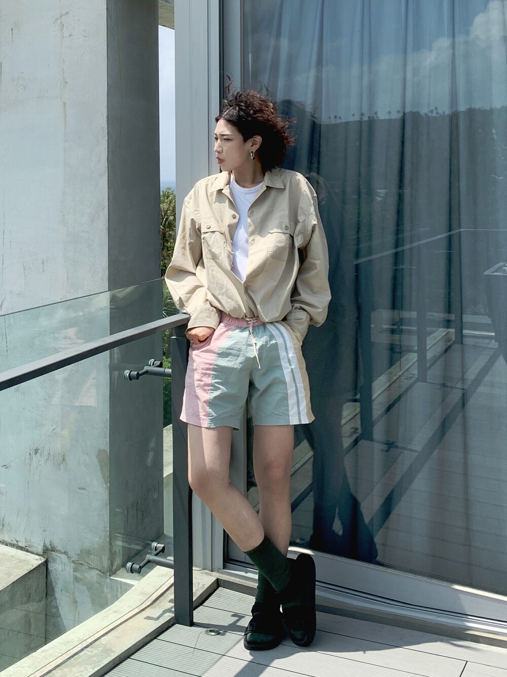 度假休閒風格,及膝短褲內搭白TEE隨性紮襯衫為搭配! Instagram ▶ 666manboss