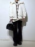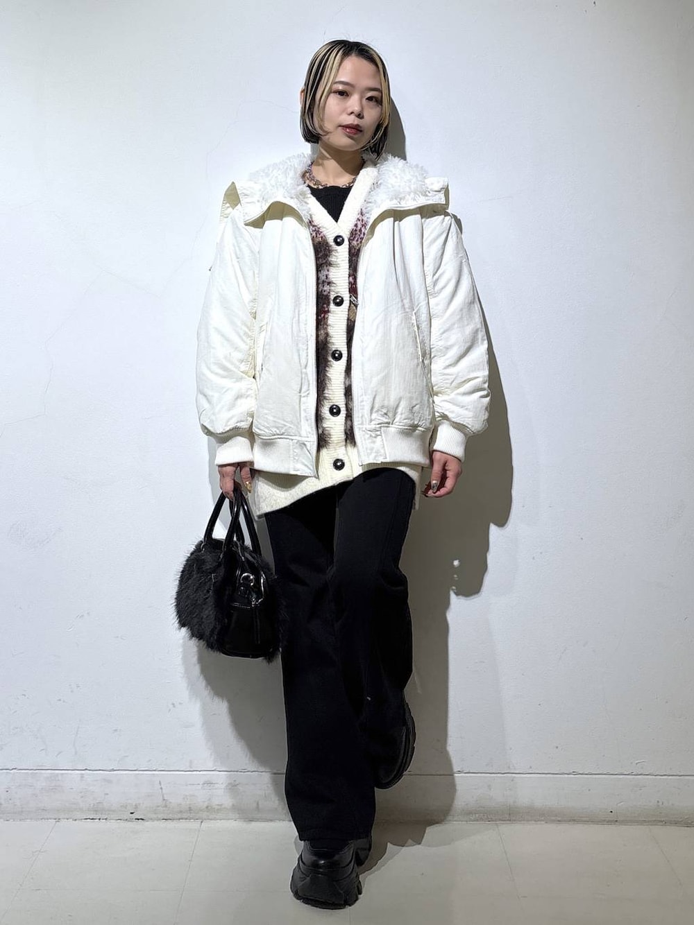 カジュアルコーデ🍓🖤 💡各アイテムのおすすめポイント  ̄ ̄ ̄ ̄ ̄ ̄ ̄ ̄ ̄ ̄ ̄ ̄ ̄ ̄ ̄ ̄ ̄ 【トップス】 ふわふわした肌触り最高な主役級カーディガン! 纏うだけで着映えするカーディガンはこの冬必須アイテムです🫶 アウター羽織っても柄がしっかり見えるので重たくなりすぎない!身幅もゆったりしているので中にも沢山着込めます◎ 【ボトムス】 大大大人気のフレアデニム! 美シルエットなので履くだけで着痩せ効果抜群💫 新色も注目です🧸 【アウター】 アウター総選挙第1位の大大大人気アウターがいよいよ店舗販売開始です👏 フェイクファーとナイロンのリバーシブルでお使い頂けるのでシーンに合わせて着用頂けます🙆♀️ 大きめの襟が小顔効果抜群で、これからの季節のマフラーも一緒に楽しんで頂けます🧣 155cmでおしりにややかかるくらいの長さなので短すぎず長すぎずボトムス選ばずに長く使えそうです☺️