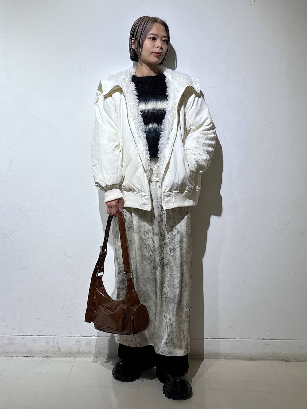 きれいめコーデ🍊🤍 💡各アイテムのおすすめポイント  ̄ ̄ ̄ ̄ ̄ ̄ ̄ ̄ ̄ ̄ ̄ ̄ ̄ ̄ ̄ ̄ ̄ 【トップス】 大人気のボーダーニット! ボーダーは今季トレンドなので1枚持っておくとオシャレ顔間違いなしです✨程よくショート丈なのでボトムス選ばずにお使い頂けます◎ 【ボトムス】 トレンドのサテン生地スカート! 今時期は正直言って1枚で履くには寒いのでタイツ必須かデニム等のレイヤードで使えそうです◎ シルエットがスッキリしているので細見え効果抜群です✨ 【アウター】 アウター総選挙第1位の大大大人気アウターがいよいよ店舗販売開始です👏 フェイクファーとナイロンのリバーシブルでお使い頂けるのでシーンに合わせて着用頂けます🙆♀️ 大きめの襟が小顔効果抜群で、これからの季節のマフラーも一緒に楽しんで頂けます🧣 155cmでおしりにややかかるくらいの長さなので短すぎず長すぎずボトムス選ばずに長く使えそうです☺️