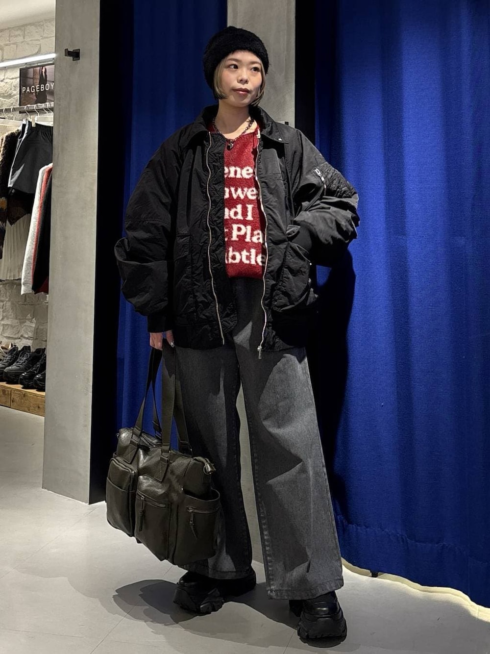 えみち(PAGEBOY横浜ジョイナス店)のブーツ「レースアップソックスブーツ 【3サイズ展開・厚底なのに軽量】」を使ったコーディネート