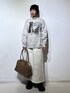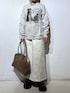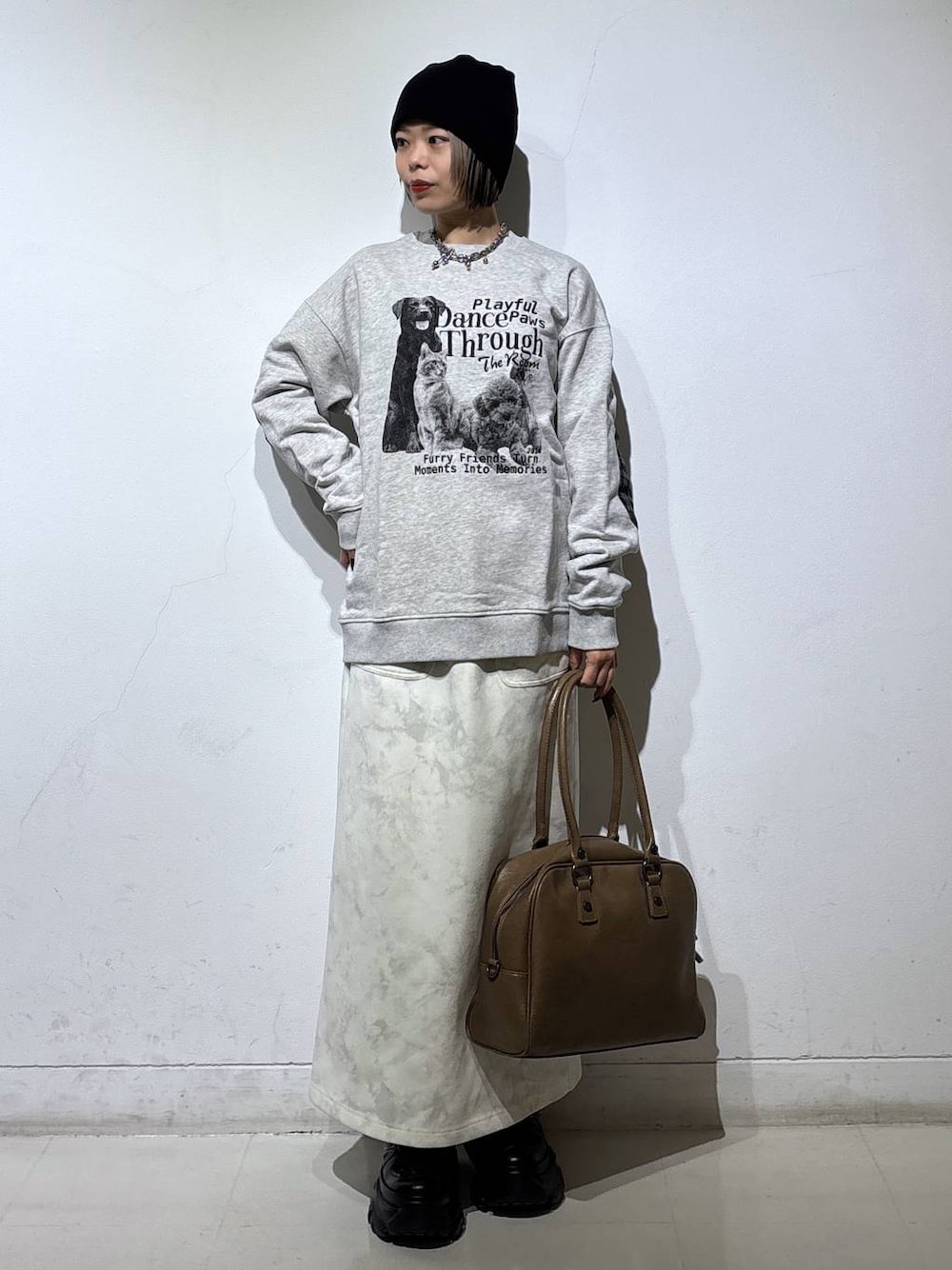 楽ちんカジュアルコーデ🐕🤎 💡各アイテムのおすすめポイント  ̄ ̄ ̄ ̄ ̄ ̄ ̄ ̄ ̄ ̄ ̄ ̄ ̄ ̄ ̄ ̄ ̄ 【トップス】 ワンちゃんたちのフォトプリントが可愛いスウェット! 生地は綿100%のしっかりした生地感です。 肘部分にエルボーパッチが施されていて古着っぽいヴィンテージ感がまたたまらなく可愛いです♡ 155cmでMサイズ着用しています! 【ボトムス】 ダンボール素材の程よくハリ感のあるスカート! 後ろにスリットが入っているので足さばきしやすいです♡ とにかくウエストオールゴム!そしてベルトループもついているので様々な体型や骨格の方でも似合うスカートだなと思いました☺️