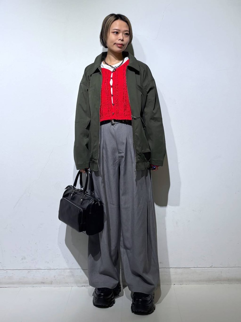 カラーコーデ🍎❤️ 💡各アイテムのおすすめポイント  ̄ ̄ ̄ ̄ ̄ ̄ ̄ ̄ ̄ ̄ ̄ ̄ ̄ ̄ ̄ ̄ ̄ 【トップス】 程よくフィット感があり着痩せ効果抜群のトップス! ボタンは外して羽織としてもお使い頂けるので1枚で着回しの効くアイテムです💫 着心地は軽く柔らかくふわっとしているので春先の軽い羽織にもってこい◎ 【ボトムス】 ポリエステル多めでしわになりにくい優秀パンツ! きれいめすぎない上品カジュアルに仕上がるバスケット織素材なので日常使いからオケージョンシーンまで幅広くお使いいただけます🙆♀️フロントの2タックが脚長効果抜群☺️UVカット、イージーケア、接触冷感の3拍子揃った優秀パンツは1枚あると絶対使える‼️ 【アウター】 配色スティッチが可愛いカバーオール! 程よくハリ感がありバサッと羽織れます◎ 大きめのポケットがミリタリー感満載でメンズライク好きな方もお好きなデザインだと思います😊