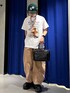 メンズライクコーデ🐱🧡 💡各アイテムのおすすめポイント  ̄ ̄ ̄ ̄ ̄ ̄ ̄ ̄ ̄ ̄ ̄ ̄ ̄ ̄ ̄ ̄ ̄ 【トップス】 大胆な猫ちゃんイラストが目を引くTシャツ! 155cmSサイズ着用で袖は肘上です🙆♀️ イラストと文字の配色が可愛い♡ 【ボトムス】 ルーズなバルーンシルエットのデニムパンツ! トレンド感のある膨らみあるデザインが可愛いです🫶 股上深めなのでハイウエストで履き込むことも出来ます☺️ 私と同じ155cm前後の方はSサイズがおすすめです🙆♀️