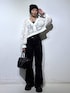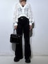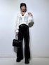 モノトーンコーデ🐻❄️🖤 💡各アイテムのおすすめポイント  ̄ ̄ ̄ ̄ ̄ ̄ ̄ ̄ ̄ ̄ ̄ ̄ ̄ ̄ ̄ ̄ ̄ 【トップス】 毎年大大大人気アイテムが新色も追加して今年も登場🌟 ペイズリー柄のような人目惹くデザインが可愛すぎるニットカーディガン!腰位置高く見えるショート丈がスタイルアップのお手伝いをしてくれます💖 インナー次第で年中お使い頂けるのが嬉しいポイント☝️ 手首にかけて程よくフレアがかる袖元があざとかわいい😍 【ボトムス】 大大大人気のフレアデニム! 美シルエットなので履くだけで着痩せ効果抜群💫 伸縮性のある素材なのでフレアパンツ特有の太ももまわりやお尻まわりのラインをひろいづらくマイナス5kg見え間違いなしの魔法のデニムです🪄︎︎✨