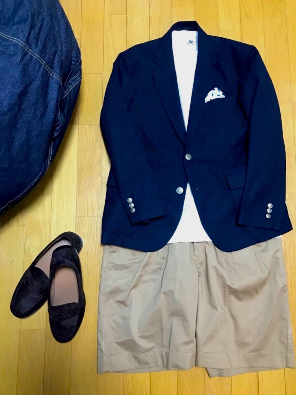 こんな感じで遊びに行きたいなあ UNIQLO Uのグルカショートパンツと、 UNIQLOのコンフォートブレザー(着丈袖丈短め)、相性いいと思うなあ