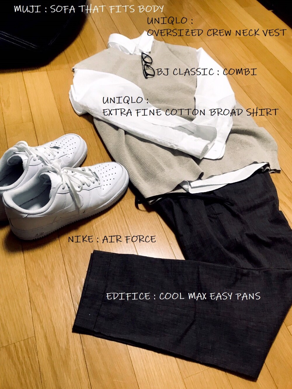 UNIQLOインラインの服でも、問題なく。 黒の靴の方が良かったかなあ。 メガネ踏みそうや。