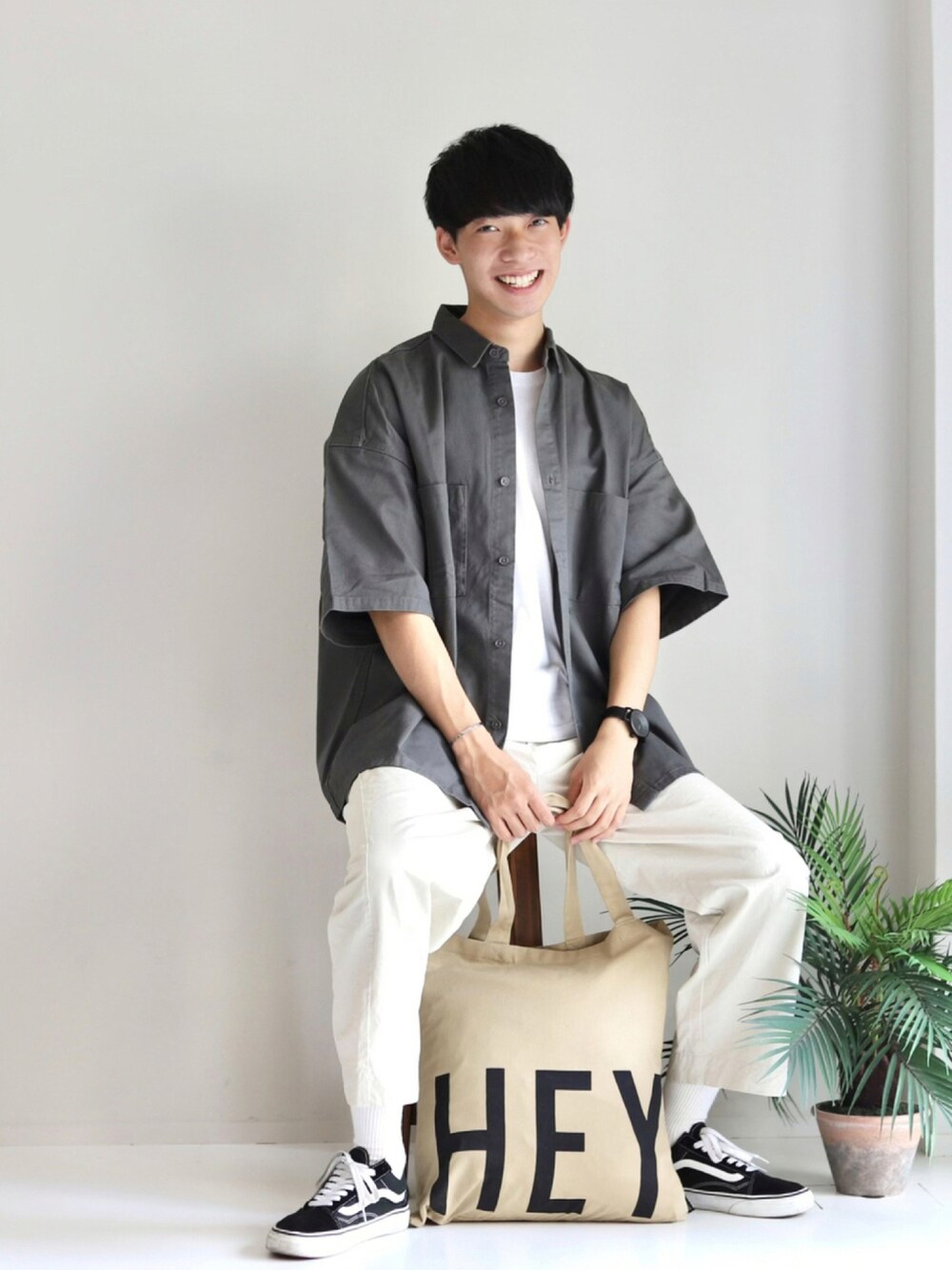 こんばんは!KOHです! 本日は、Mark Gonzalesのチャコールグレーのジャケットを白パンツとMIX! モノトーン⊕HEYデザインのトートでシンプルに!!