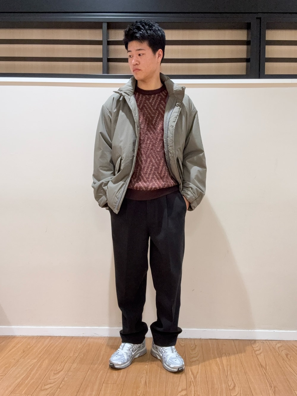ニュアンスカーキ中綿ブルゾンを主役に、ゆったりワイドパンツでバランスを取った今っぽいシルエット。インナーを変えるだけで雰囲気チェンジも可能。 春先・秋冬どちらも使える長く着回せる1着。