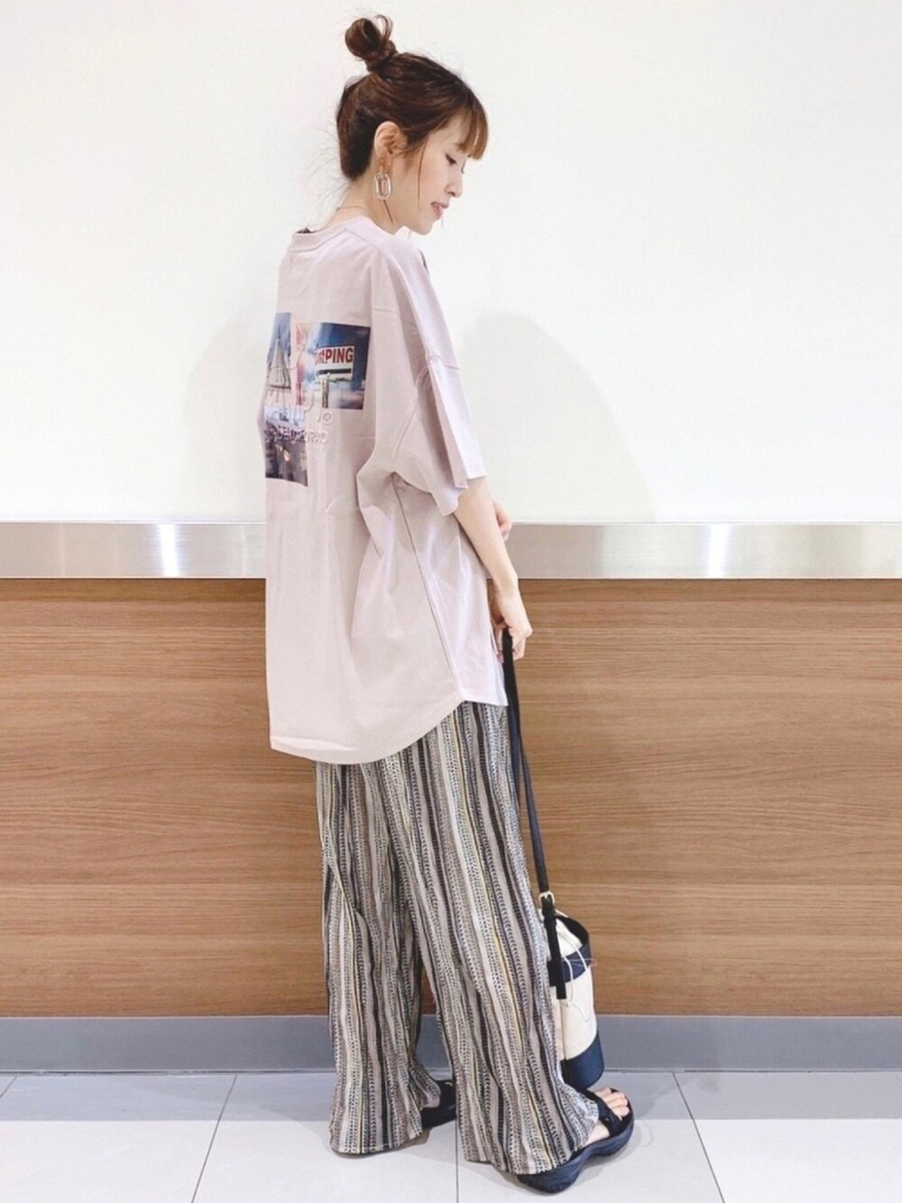 CAMP7のフォトプリントTシャツ🎶 ゆるっと着られてかわいい💕 今日はボトムもゆるっと楽ちんコーデです。 プロフィールの🖥画面から購入も出来ます。 良かったらチェックしてみてください🙌