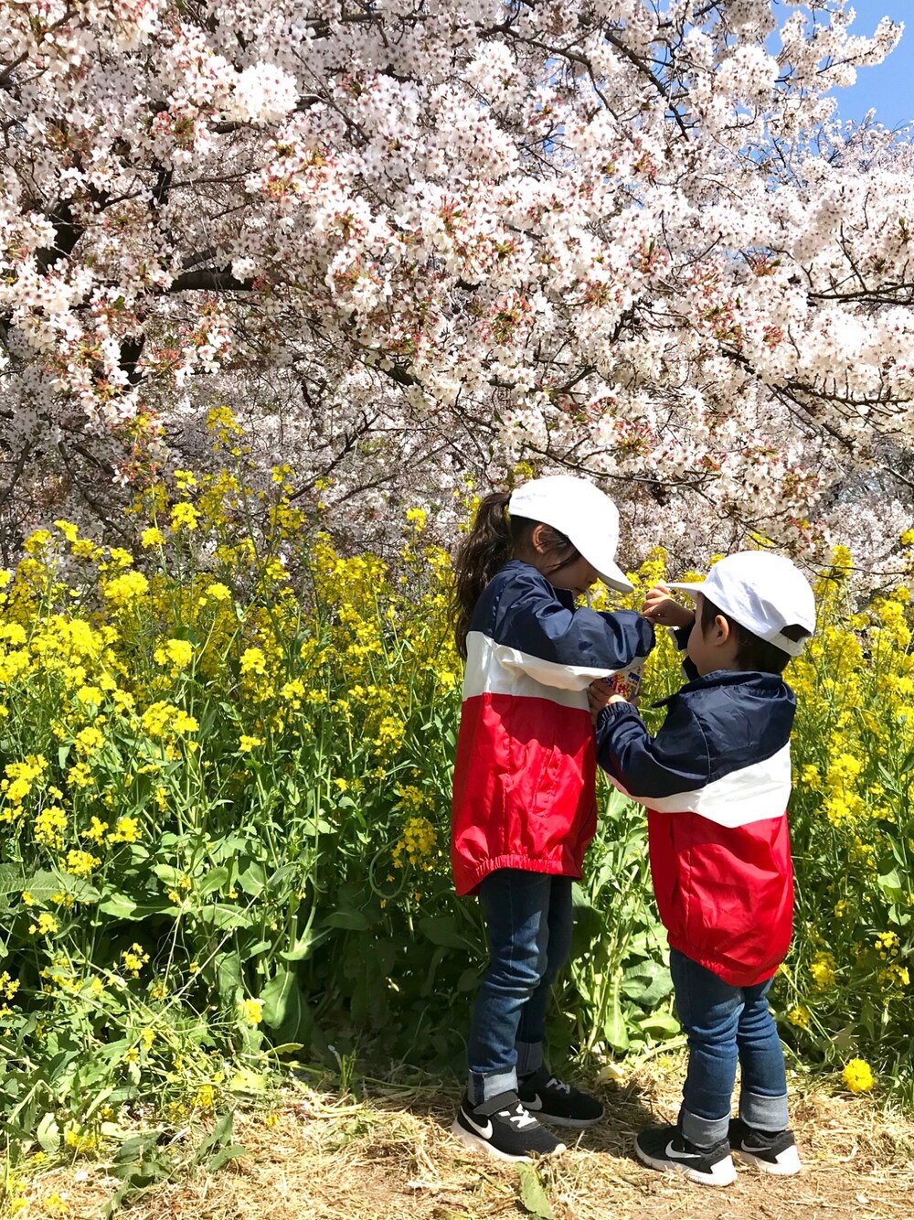 昨日のリアルお花見コーデ🌸 桜と菜の花が綺麗なお花見スポットにlet's go! 後ろの素敵な景色より1つの🍧に夢中な2人👫w 幼稚園用に買った西松屋のナイロンジャケットは目立つから迷子防止に最適🇷🇺✨ 昨日ZETTO君も同じの着ててテンション⤴︎😚💕 お洒落さんと同じ服ってコーデの参考にもなるし、 気持ち的にもすっごく嬉しい〜っ(〃ω〃)❤️ コーデにピンクはないけど、🌸って事でそうまん君の #勝手に一人桜祭りをタグ付け✨ 覗いて頂きありがとうございます😊 4月も宜しくお願いします👫♡