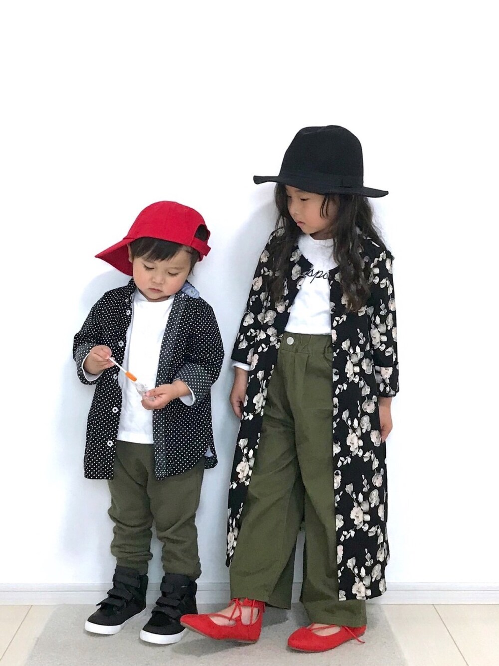 柄×カーキ×赤さしな昨日のリアルコーデ👫♡ この春入園、入学、進級したみなさん🌸✨ おめでとうございます㊗️ そして本日。愛さんもついに幼稚園デビューです🙌✨ 年中さんからの途中入園なので進級式に参加してきます🏫 👩🏻長女→6年生。 👧🏻愛さん→年中。 🧒🏻かー君→プレ。 3人共元気に楽しく成長できる1年になるといいな〜💕 覗いて頂きありがとうございます😊 いいね&お気に入り&フォローとても嬉しいです✨