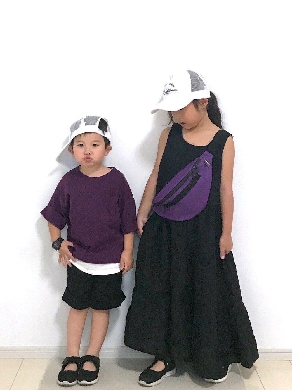 実は我が家も買ってたGUのティアードワンピ👗✨ 愛さんが今1番お気に入りの服❤︎ 👧🏻one-piece...140着用。 👦🏻pants...110着用。 覗いて頂きありがとうございました😊