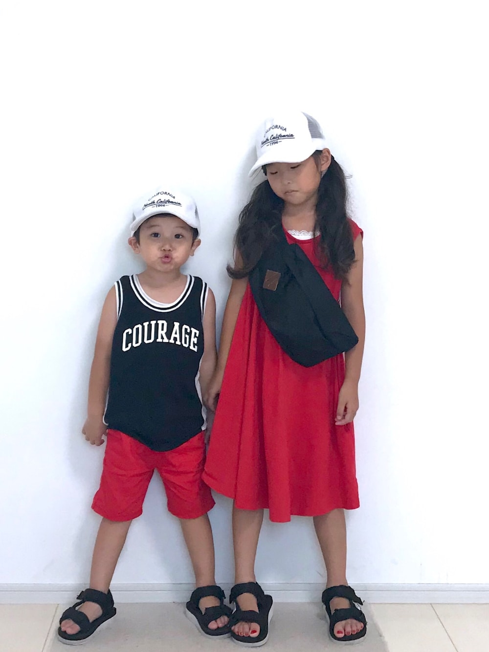 赤コーデ👫❤️ 連日外遊びや家プールでこんがり良い色に👦🏽✨👧🏽 覗いて頂きありがとうございました😊