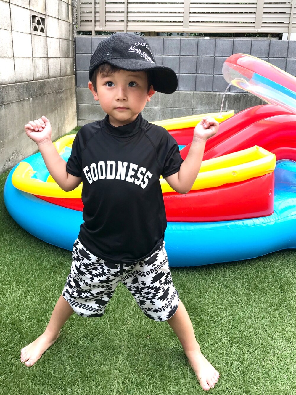 お洒落な子達が続々と秋物アップしてる中...🍁 8月最終日❗️我が家は今更感満載な水着〜🤣笑 devirockさんのラッシュガード✨ (去年は白買ったので今年は黒に❤︎) 下はバースデイの物で安定のモノトーン👦🏻 今年はプール.海.川と水遊び三昧でした(๑˃̵ᴗ˂̵)👍 覗いて頂きありがとうございました😊