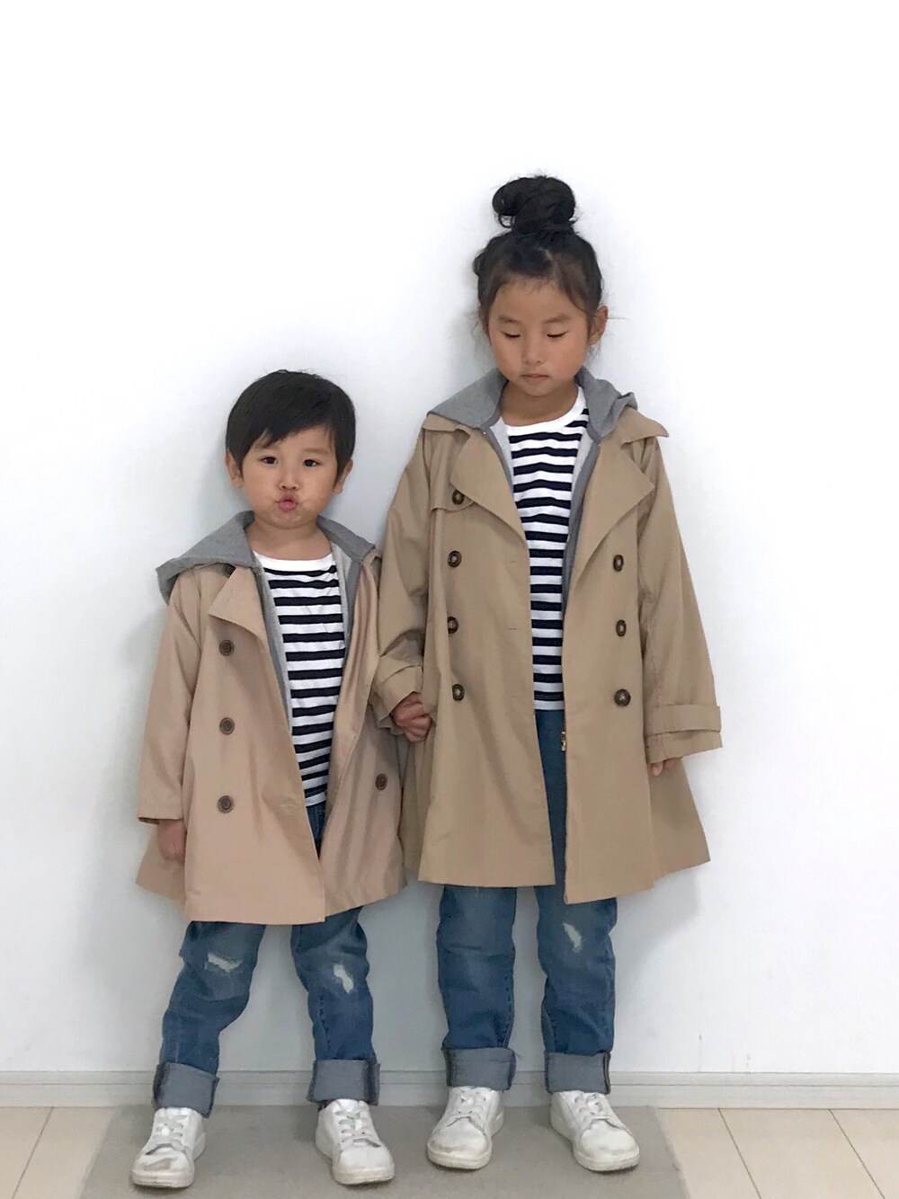トレンチコーデ🧥✨ 👧🏻 ai【6y6m/119cm】 コート...size120。 パーカー...size130。 ロンT...size120。 パンツ...size130。 👦🏻 kaa【4y7m/100cm】 コート...size100。 ロンT&パンツ...size110。 覗いて頂きありがとうございました☺︎