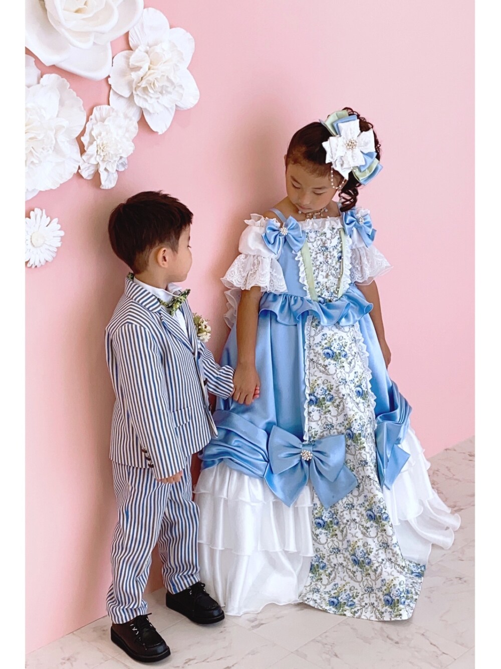 七五三別version👫 最後は2人でドレス&タキシード♡ 着物は母が独断で決めたので、ドレスは愛さんに好きなものを選んでもらいました♪ 👧🏻ブルーのフリフリリボン💙 👦🏻ブルーのストライプ💙 洋装は色味を合わせてリンクっぼく(*≧∀≦*)❤︎ 七五三picお付き合い頂きありがとうございました☺︎