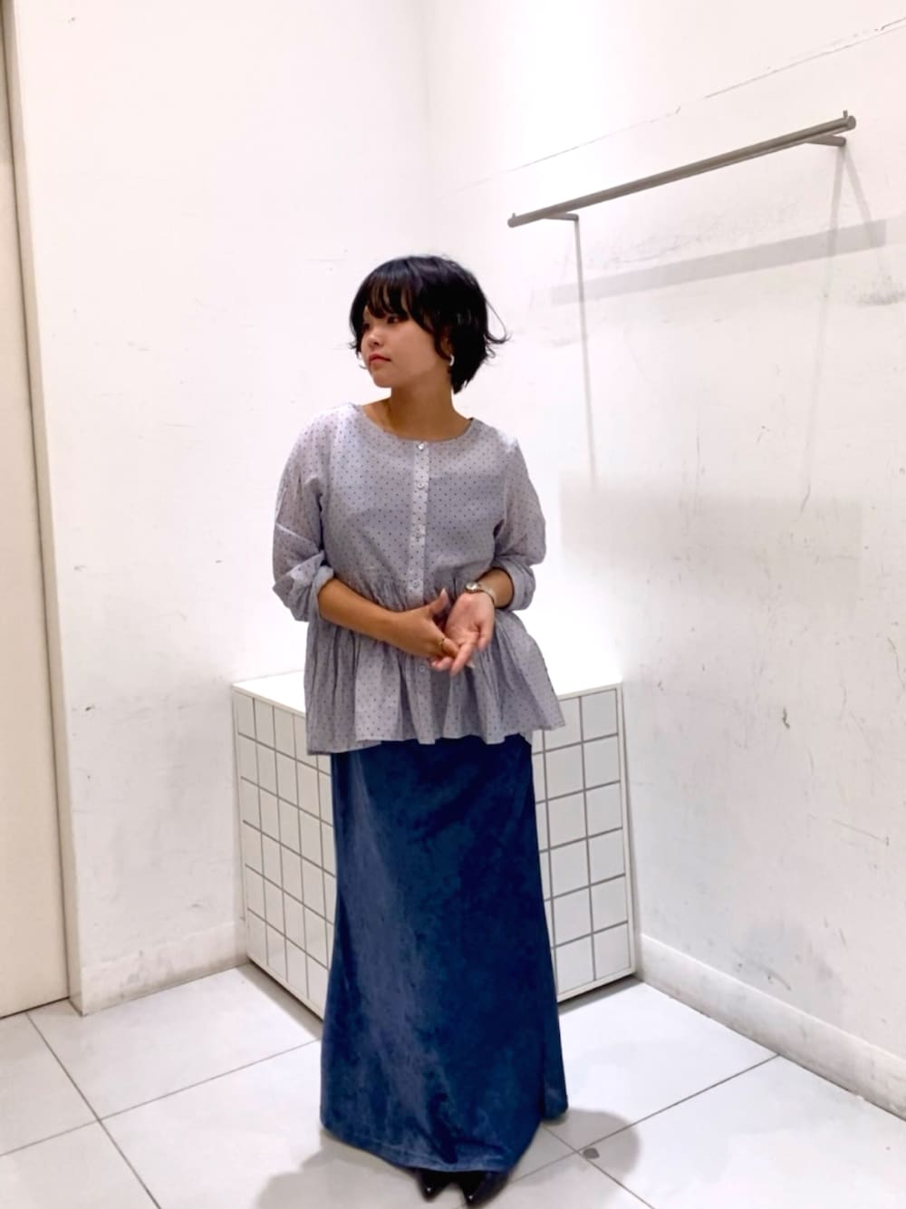 杏莉(SENSE OF PLACE グランツリー武蔵小杉)のシャツ/ブラウス「フロッキードットウエストギャザーブラウス」を使ったコーディネート