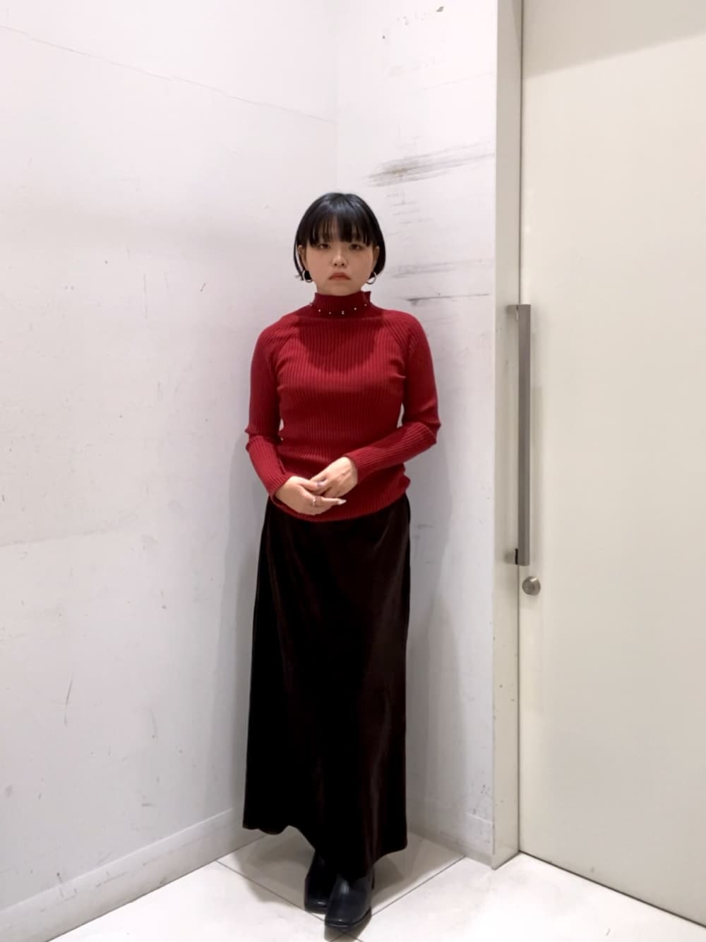 赤ニットとブラウンベロアのスカートだなんてクリスマスを楽しみすぎていて可愛いに決まってるので皆さんもやりましょう🧶🎄メリークリスマス ︎︎♪′