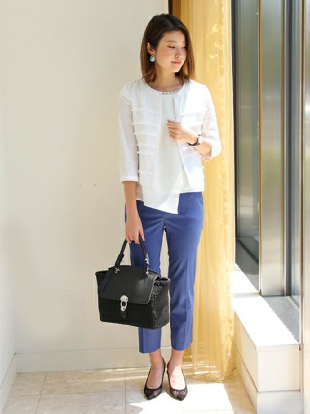 UNITED ARROWS そごう横浜ウィメンズストア STAFF 01のノーカラージャケット「○UAB フリンジ ノーカラー ジャケット∂」を使ったコーディネート