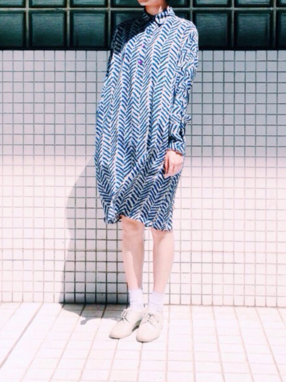 ブルー系のワンピースを着用したレディースの夏コーディネートの1枚目の写真