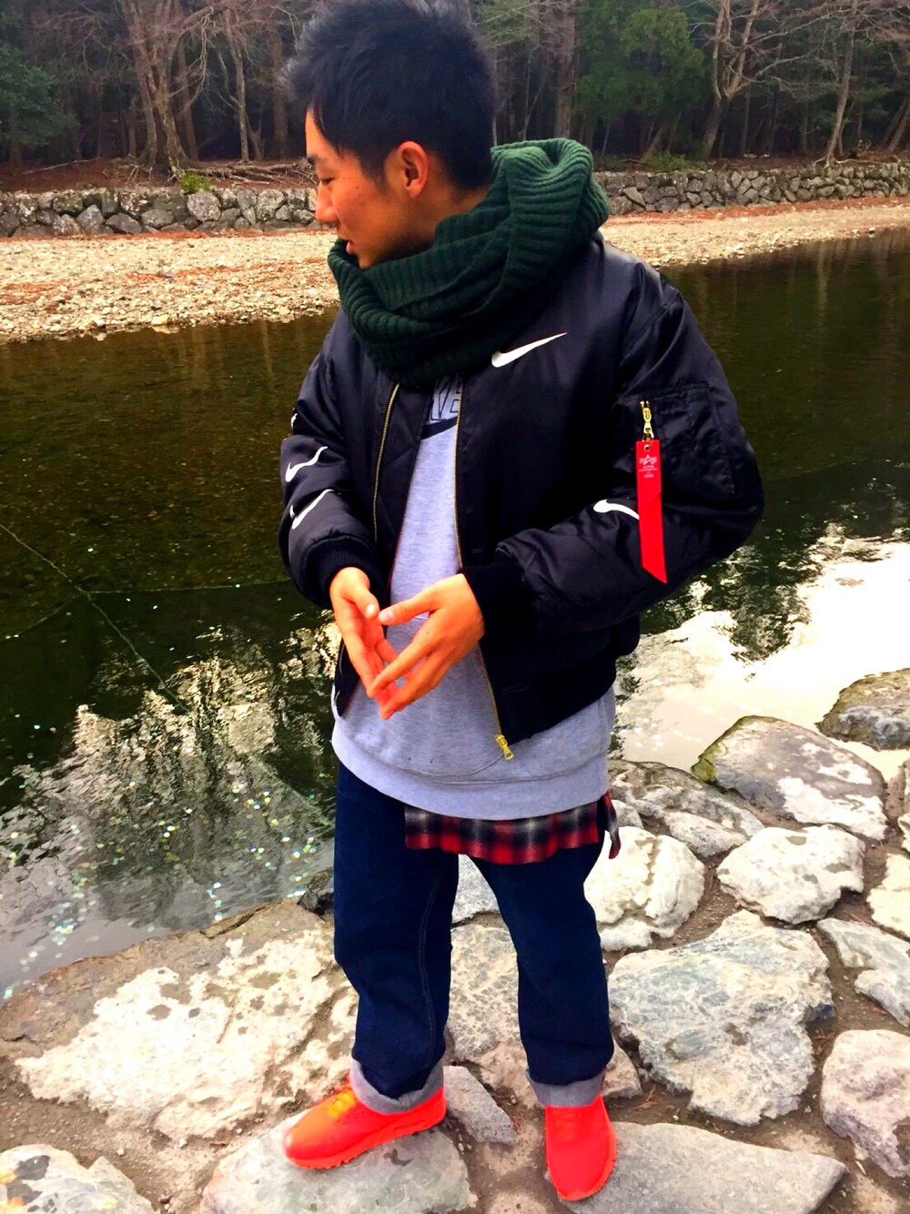 ほんっと久々の更新! みなさま明けましておめでとうございます! 今年もよろしくお願いします!!! 今まで服着てなかったわけじゃないですよ?ww これも初詣のときに撮ってもらったやつ笑 ALPHAがNIKEとコラボしたMA-1にNIKEのビッグパーカーを合わせました! スニーカーもNIKE〜! 確か靴下もNIKEだったはず笑 オールNIKEでした〜!!! NIKEいいよね〜(*´艸`*) これからはサボらず更新していきます!! よかったらいいね、コメントよろしくお願いします!! でわまた!! ばいせよ〜!