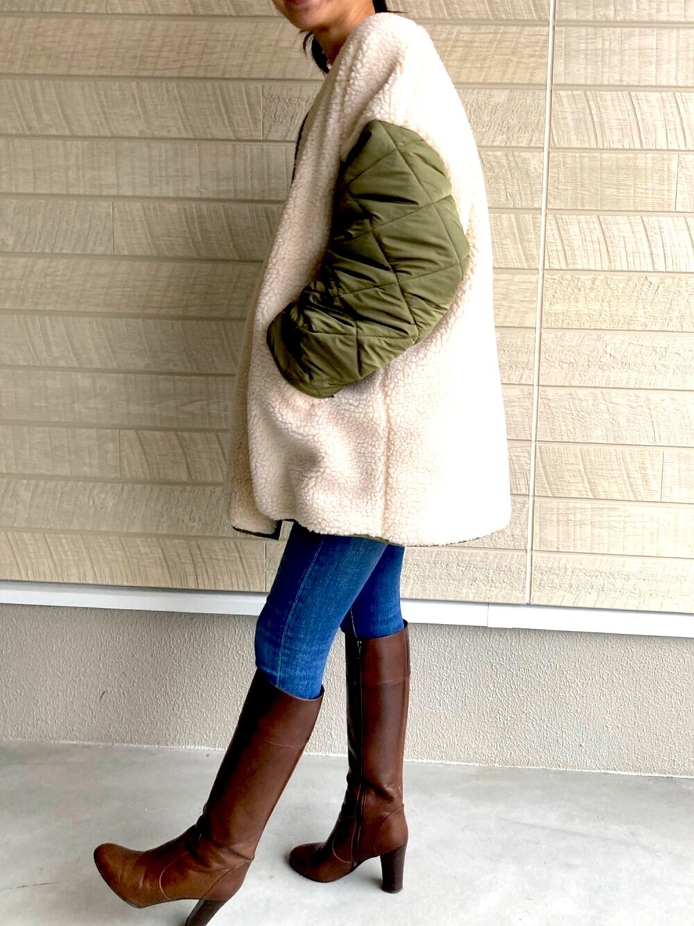 アウター着回しコーデ♡ 人気のリバーシブルボアはプロフィールからbaseで購入可能です(^^)