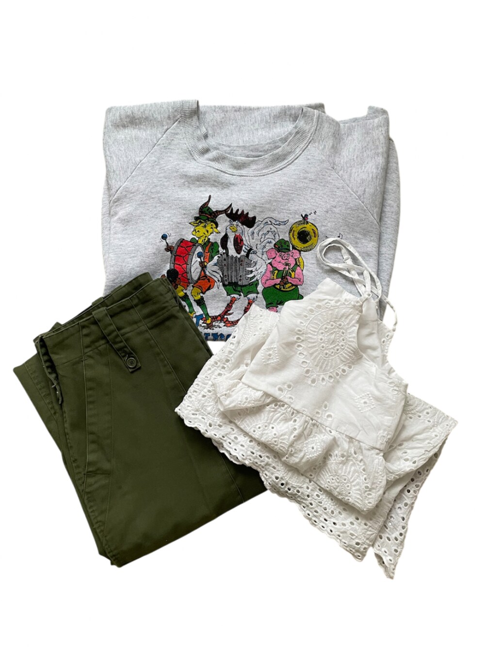 2025.3.27❄️0℃↔5℃ ちょっと外に出たけど 風が強い。ちょっと雪も降ってる。 お気に入りのスウェット。 中にイタリア軍のアンダーウェア ウールカットソーに CIAOPANIC TYPYのレースキャミを重ねる。 そんでもって軍パン。 はやくアウターなしで出かけたい。