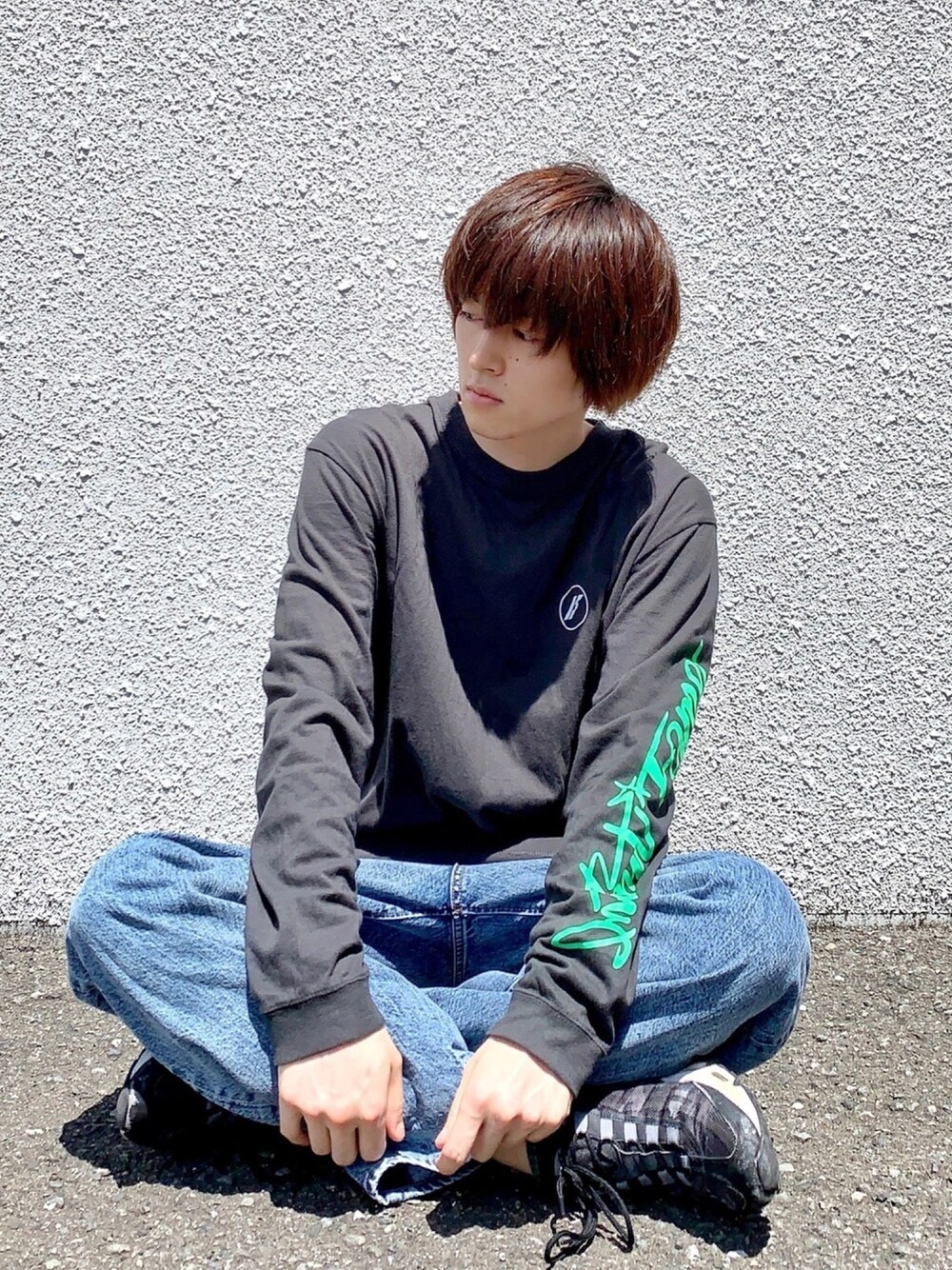 古着チックな組み合わせ。 この時期ロンTは重宝しますね! 因みに僕が来てるこのロンTなど、INSTANT FAMEの商品がZOZOTOWNで1500円割引クーポン出てるから、今ならお買い得に買えますよー!! 是非、下のリンクから飛んで見てみてください!! はやくコロナ収まって、春コーデしたいな🌸