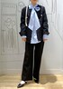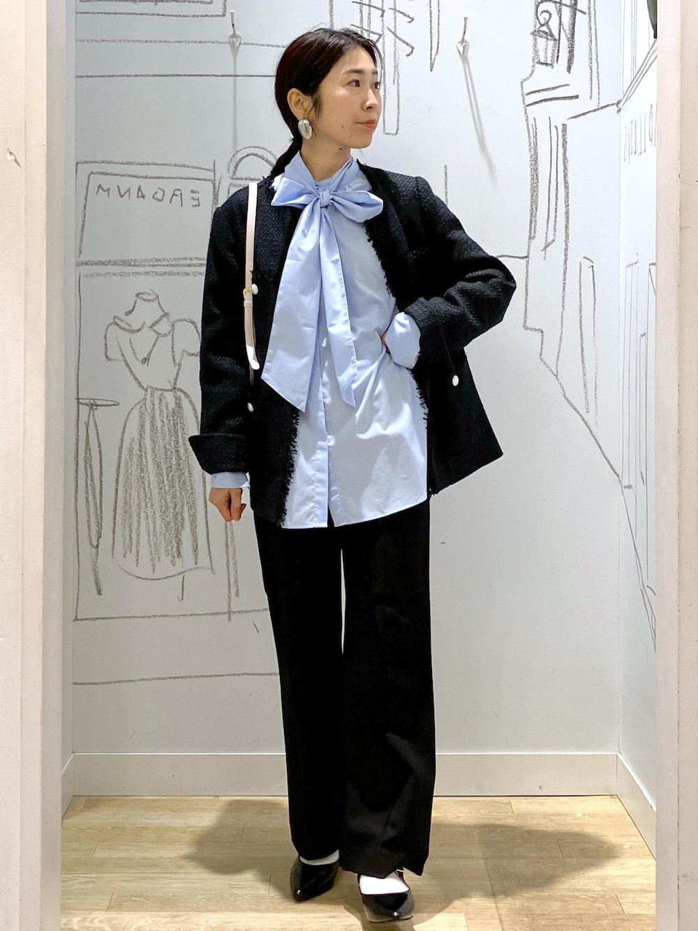 今期おすすめのボウタイブラウスを使った セレモニーコーデです☺︎ 大ぶりなボウタイが 顔周りを華やかに見せてくれるので ハレの日にぴったりなブラウスです! ネイビーのジャケットは入卒兼用で着用できるので カラーを悩まれている方におすすめのカラーです。 パンツとバッグはSALEアイテムなので この機会に揃えておいていただくと とってもお得です☺︎