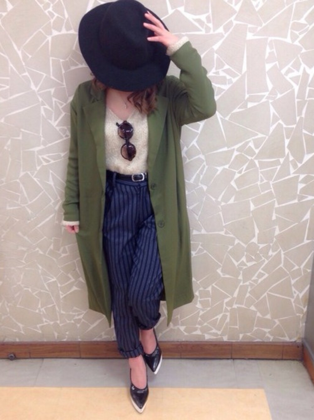 カーキのジャケットで今年っぽさを😊 Vネックとロールアップでバランス考えて、 ハイウエストパンツでスタイル良く見えるように しました。