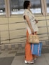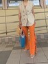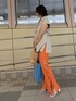 夏は原色が着たくなる🍊 moussyのパンツはフレアなシルエットと、サイドのデザイン可愛すぎる🥺